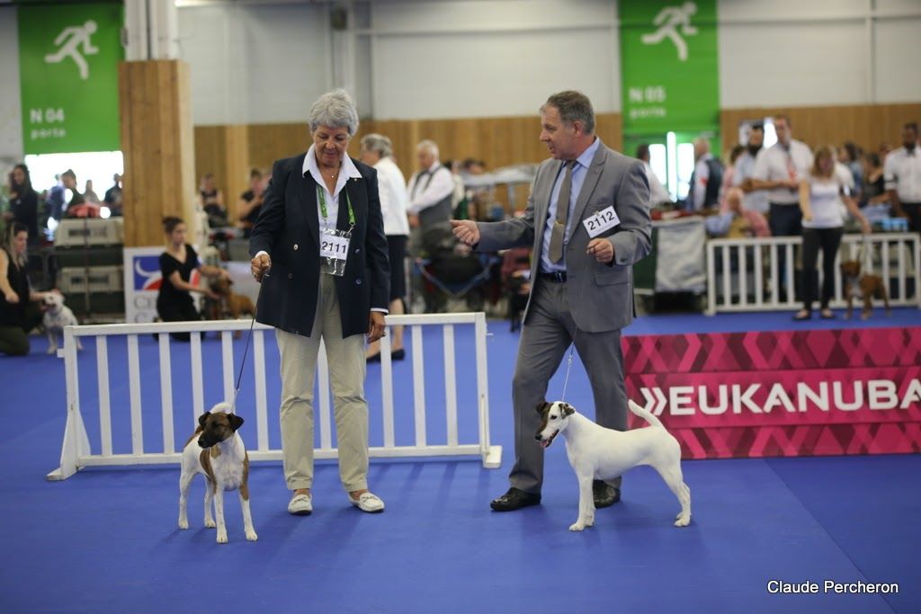 MEILLEUR POIL LISSE DE LA NATIONALE D'ELEVAGE 2018 1ère marche du podium CACS - MEILLEUR DE RACE - RESERVE BEST IN SHOW Moyenne de 94/100 points, EXC+ En classe ouverte femelle